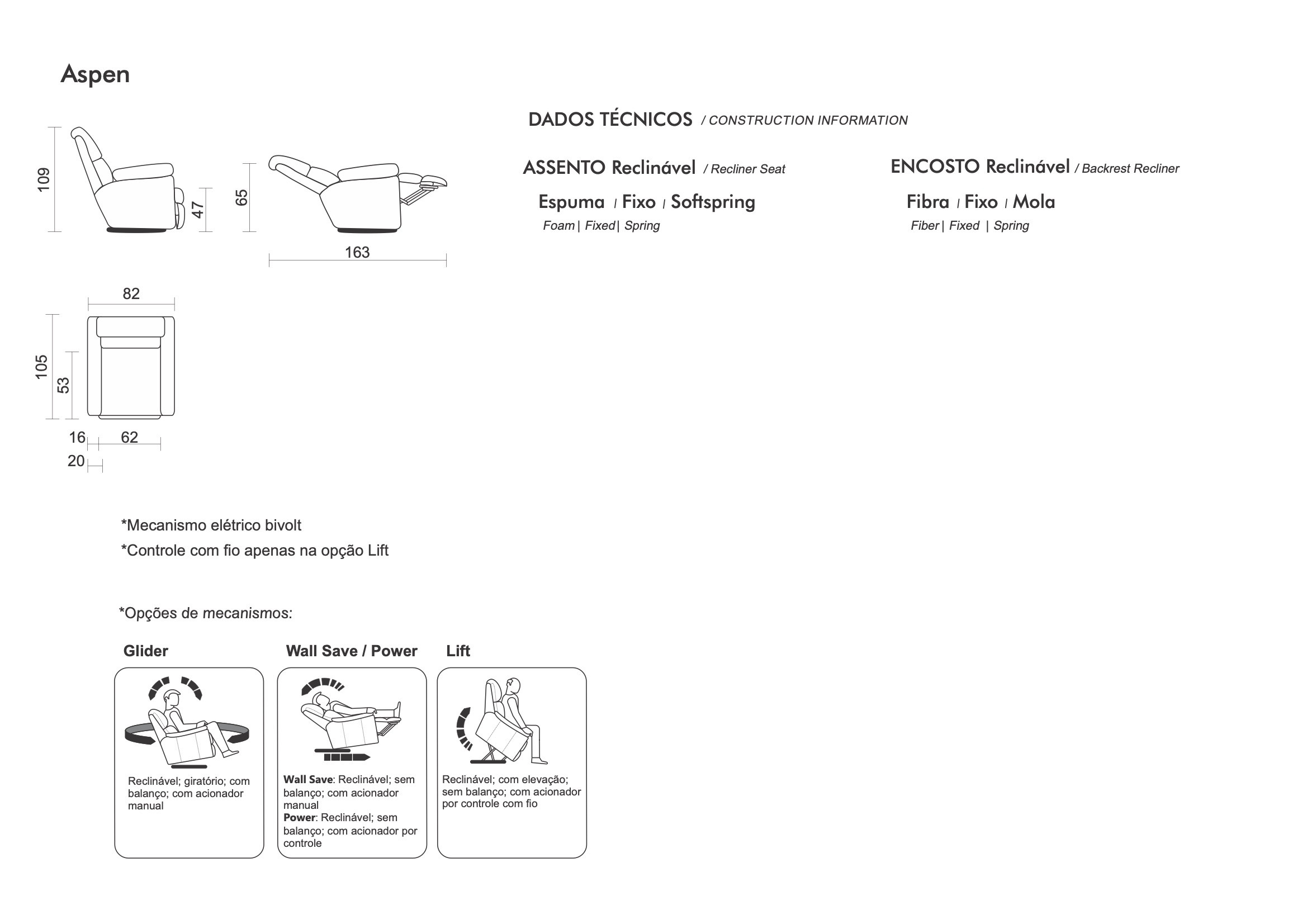 A Poltrona Aspen oferece o máximo em conforto e tecnologia. Com mecanismo reclinável elétrico, entrada USB e um sistema de triplo conforto com molas, espuma e manta siliconizada, ela garante uma experiência única de relaxamento.