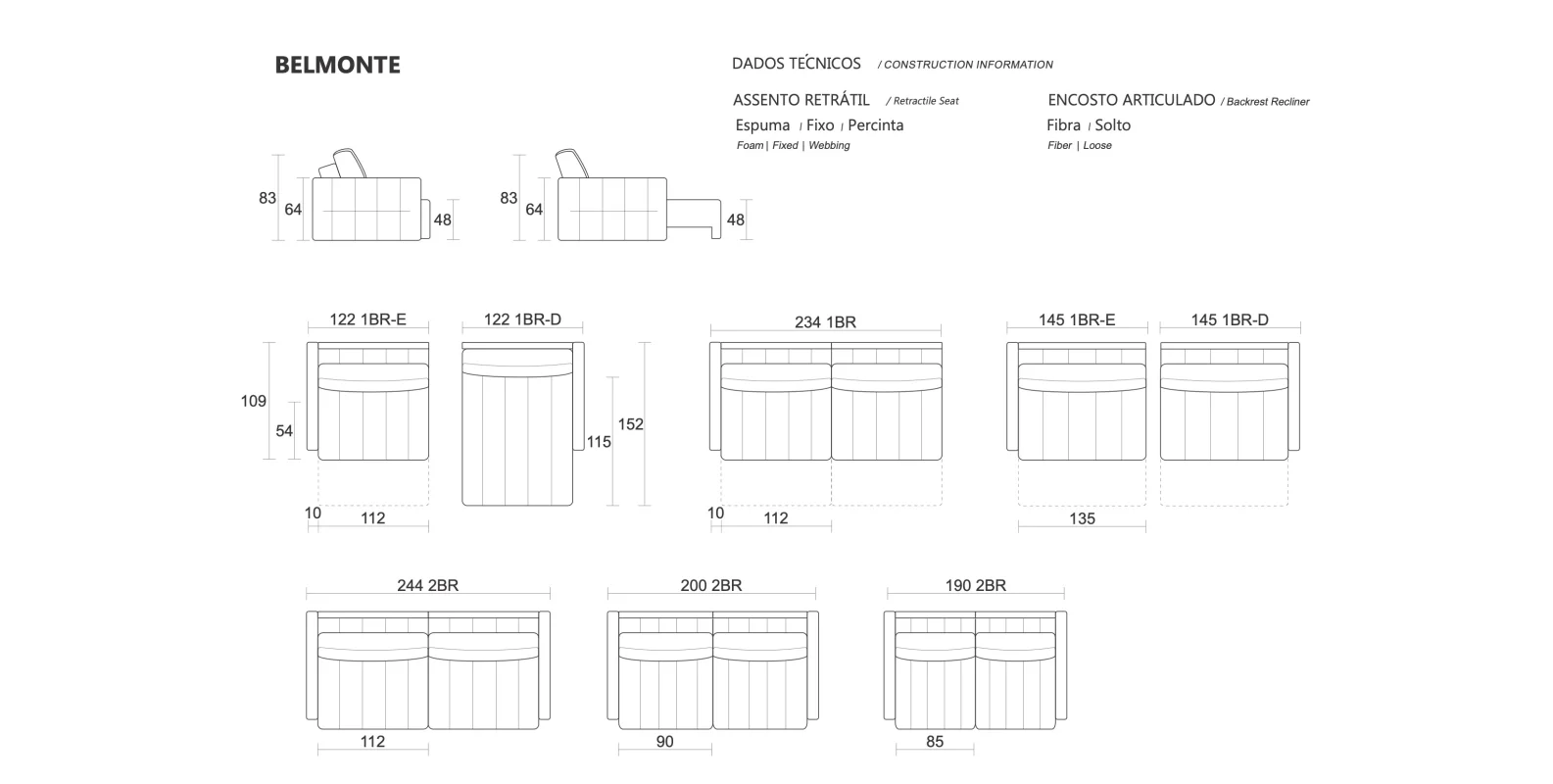 O Sofá Belmonte é o convite perfeito para relaxar. Com assentos retráteis, o modelo possui linhas modernas e proporciona o aconchego que você merece, seja para momentos de descanso ou para receber amigos e família.