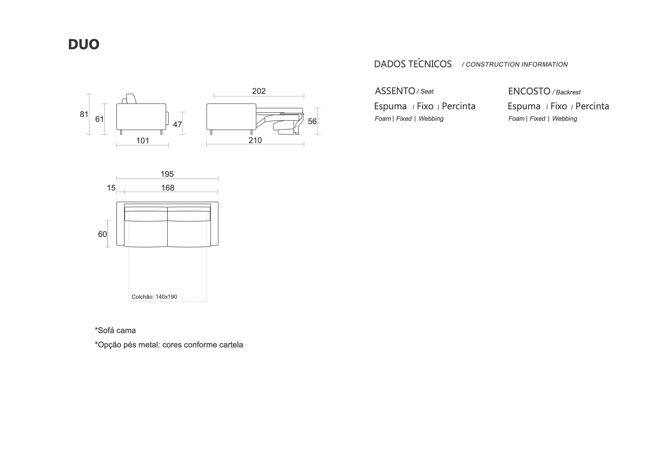 O Sofá-Cama Duo combina elegância e funcionalidade. Com design atemporal e um mecanismo de fácil operação, ele se transforma em um colchão de casal, oferecendo conforto ideal para escritórios, segundas residências ou apartamentos para Airbnb.