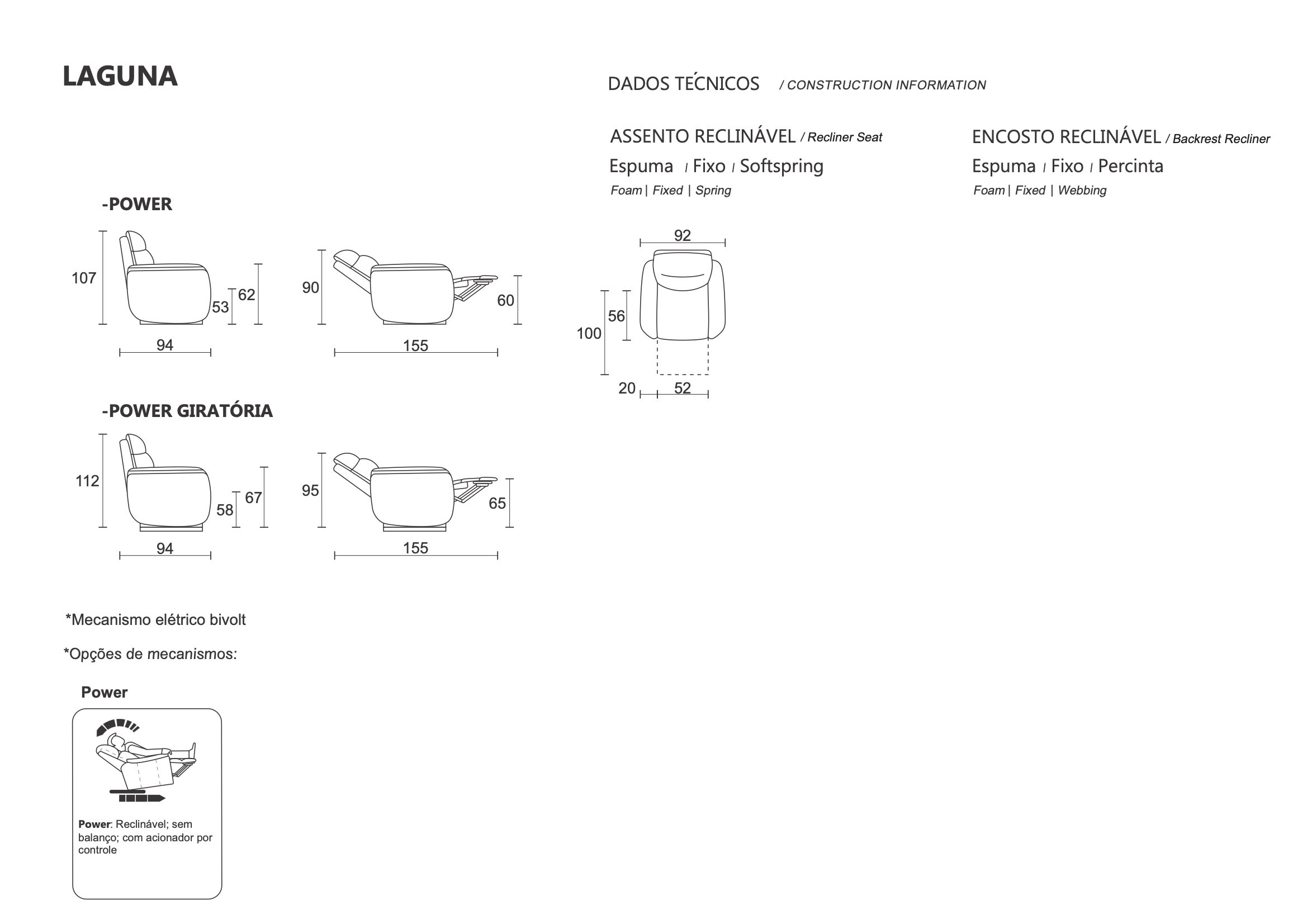Compacta e elegante, a Poltrona Laguna se adapta a qualquer ambiente sem abrir mão do conforto. Seu mecanismo estreito exclusivo, suspensão de alta qualidade e espumas premium garantem um relaxamento profundo. Com entradas USB e USB-C, oferece praticidade para cada momento de pausa.