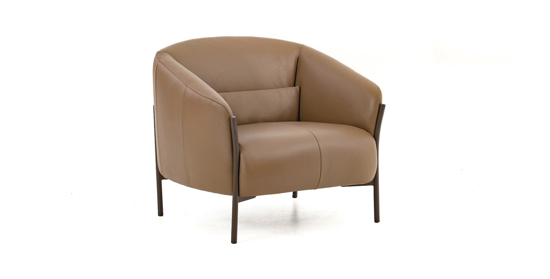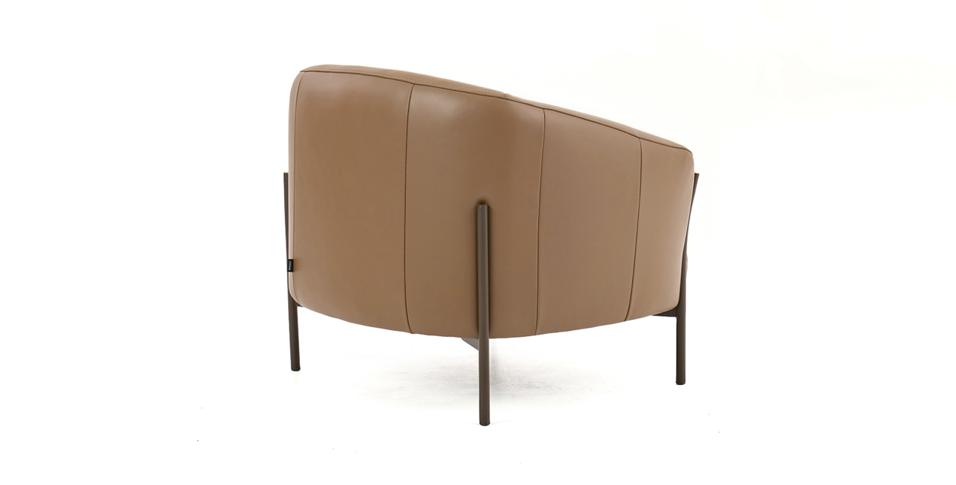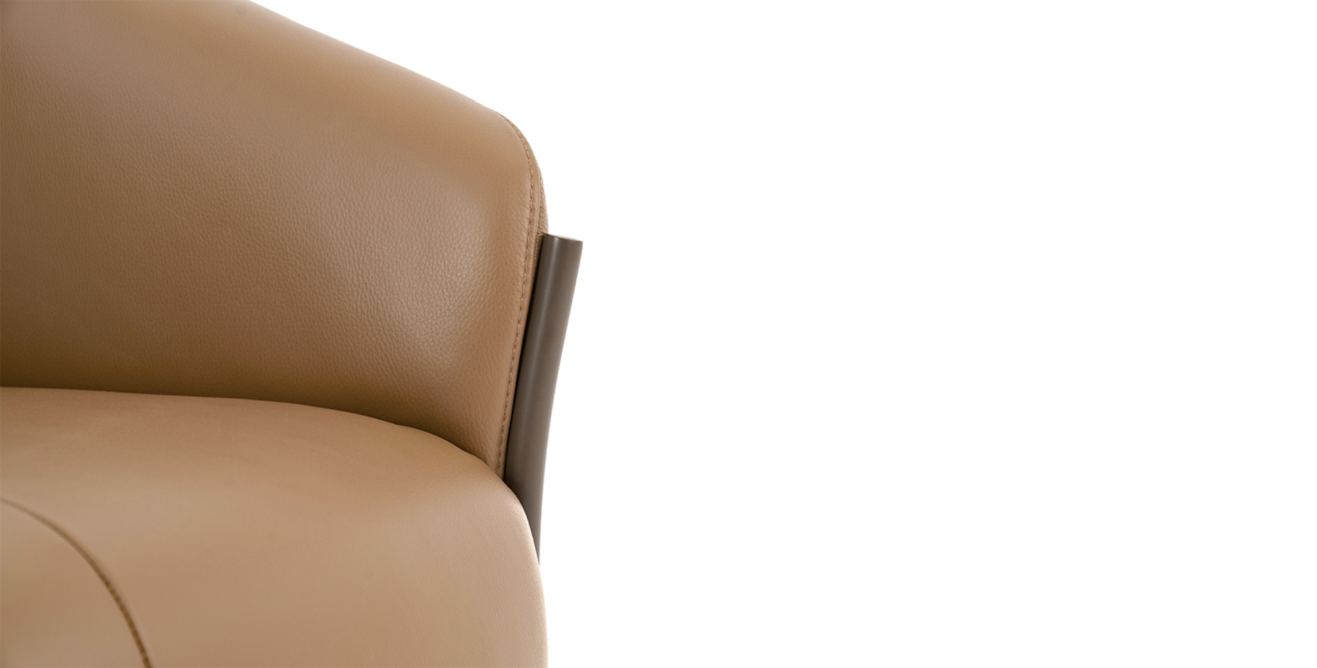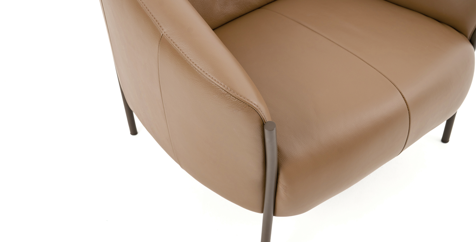 A Poltrona Olímpia é uma peça de design contemporâneo que se destaca pelo seu visual marcante e elegante. Seu design de linhas fluidas é complementado pelos pés em metal, com formato curvo, que conferem um toque de sofisticação e leveza à peça.