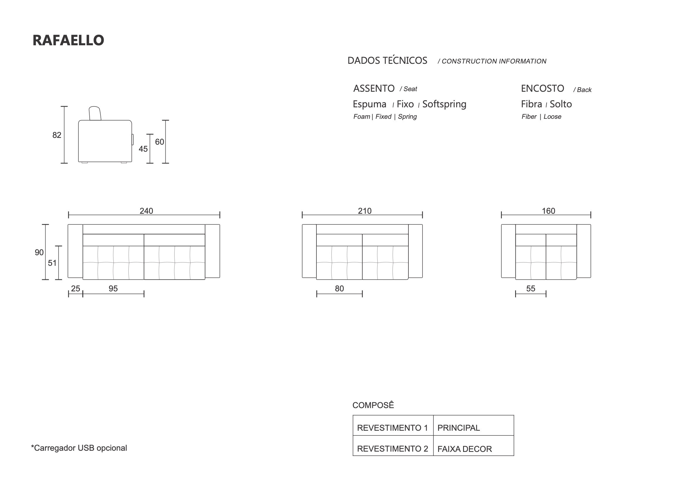 Com costuras refinadas e almofadas soltas no encosto, o Sofá Rafaello une estética e conforto, oferecendo um design minimalista que se adapta a diversos estilos de decoração.