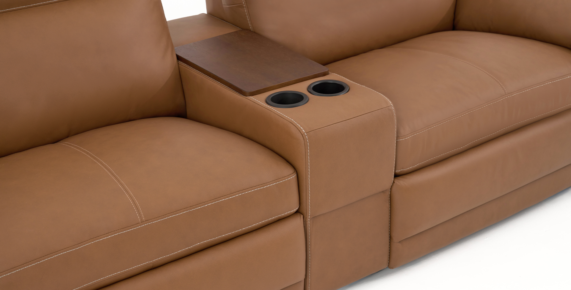 Reclinable y práctico, el Collet se adapta fácilmente al día a día. En esta versión, el modelo incorpora una nueva consola central diseñada para mejorar la experiencia del cine en casa. El accesorio ofrece espacio para apoyar bebidas y objetos, y combina la comodidad de la reclinación con la conveniencia de tenerlo todo al alcance de la mano.