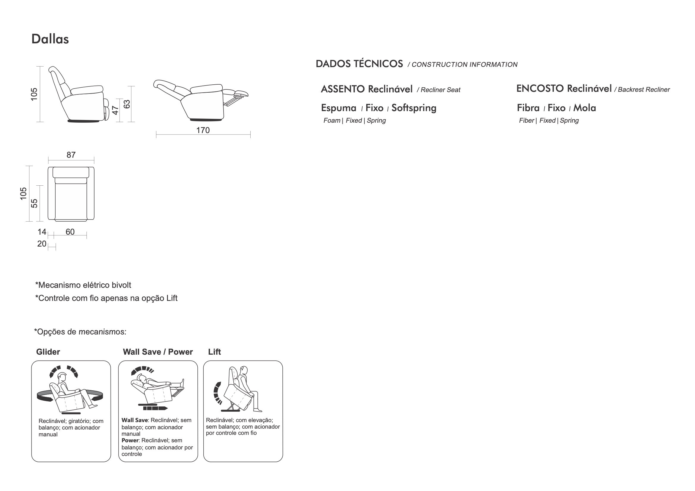 Diseñado para la máxima comodidad, el sillón Dallas ofrece reclinación eléctrica o manual y un sistema de triple confort que lo abraza mientras se sienta. Ideal para relajarse y disfrutar de sus momentos de descanso con una calidad incomparable.