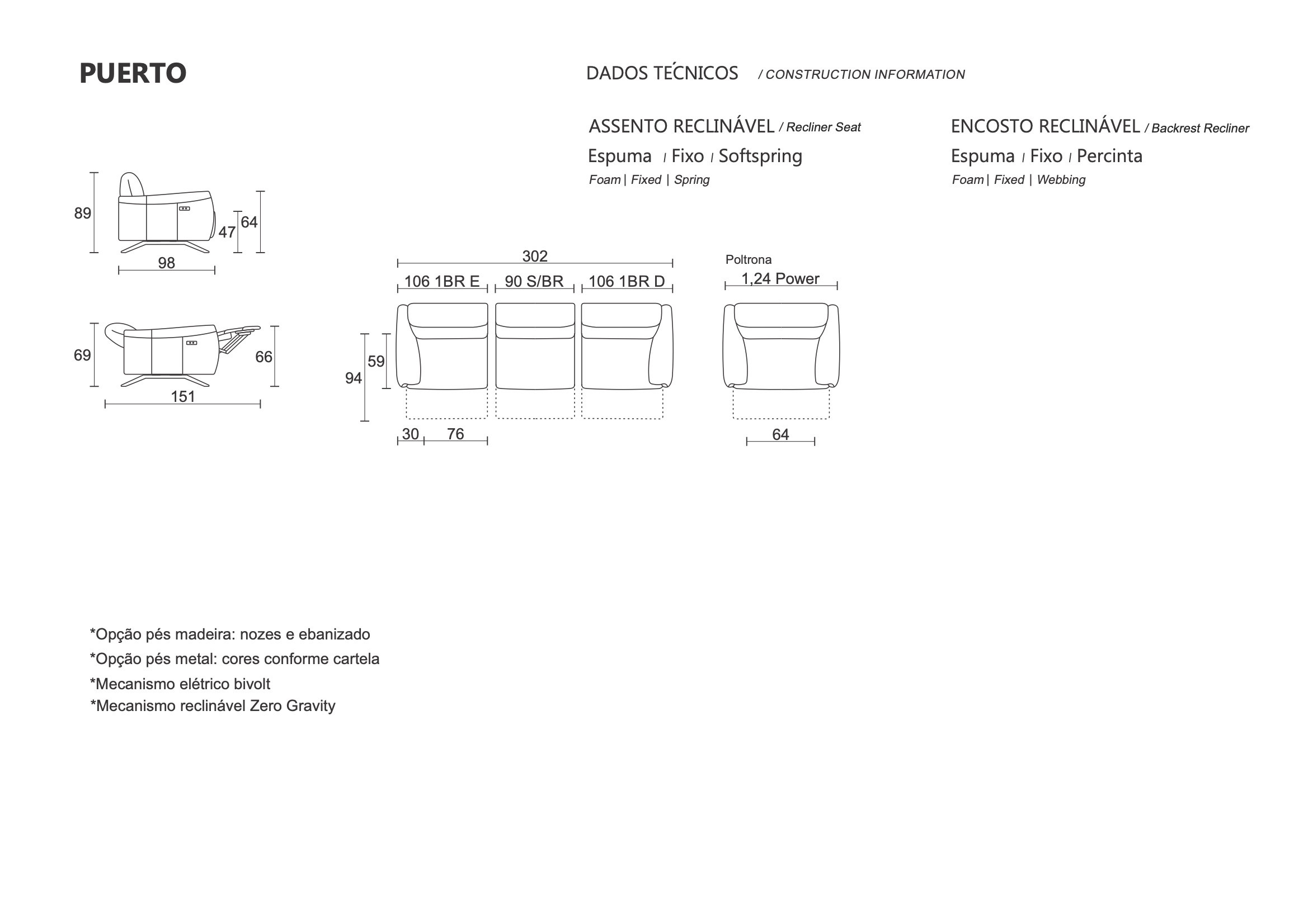 Con Tecnología Zero Gravity, el Sofá Puerto brinda una posición ergonómica que alivia la presión en la espalda y articulaciones, mientras que sus opciones de módulos con y sin apoyabrazos y entradas USB y USBC ofrecen versatilidad, personalización y practicidad para tu rutina.