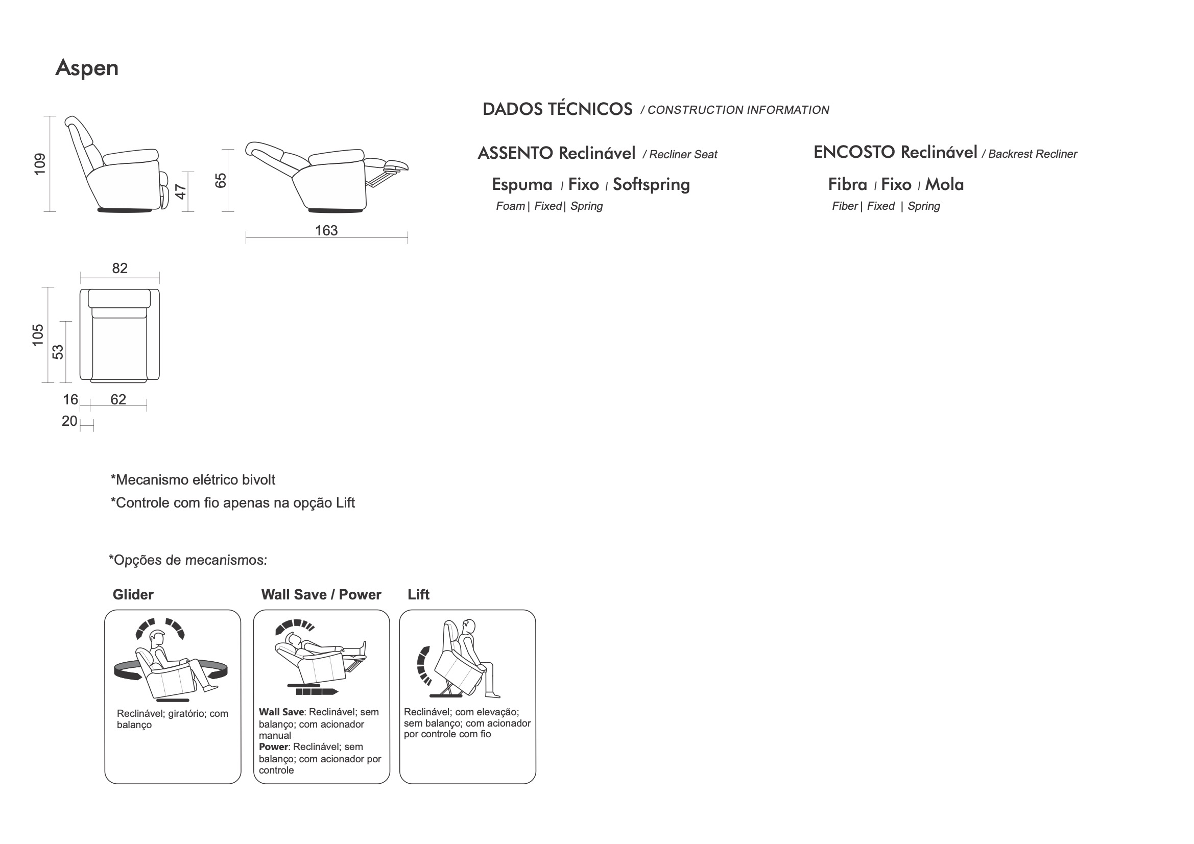 A Poltrona Aspen oferece o máximo em conforto e tecnologia. Com mecanismo reclinável elétrico, entrada USB e um sistema de triplo conforto com molas, espuma e manta siliconizada, ela garante uma experiência única de relaxamento.